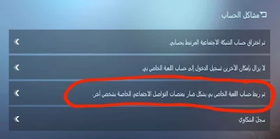 الغاء ربط حساب ببجي برقم الهاتف - بعدها اختر (تم ربط حساب اللعبة الخاص بي بشكل ضار بمنصات التواصل الاجتماعي الخاصة بشخص آخر)